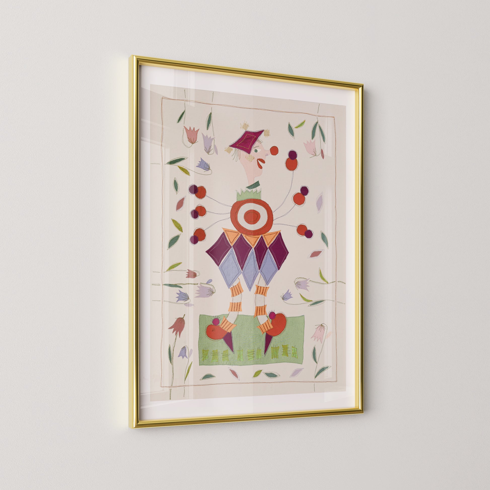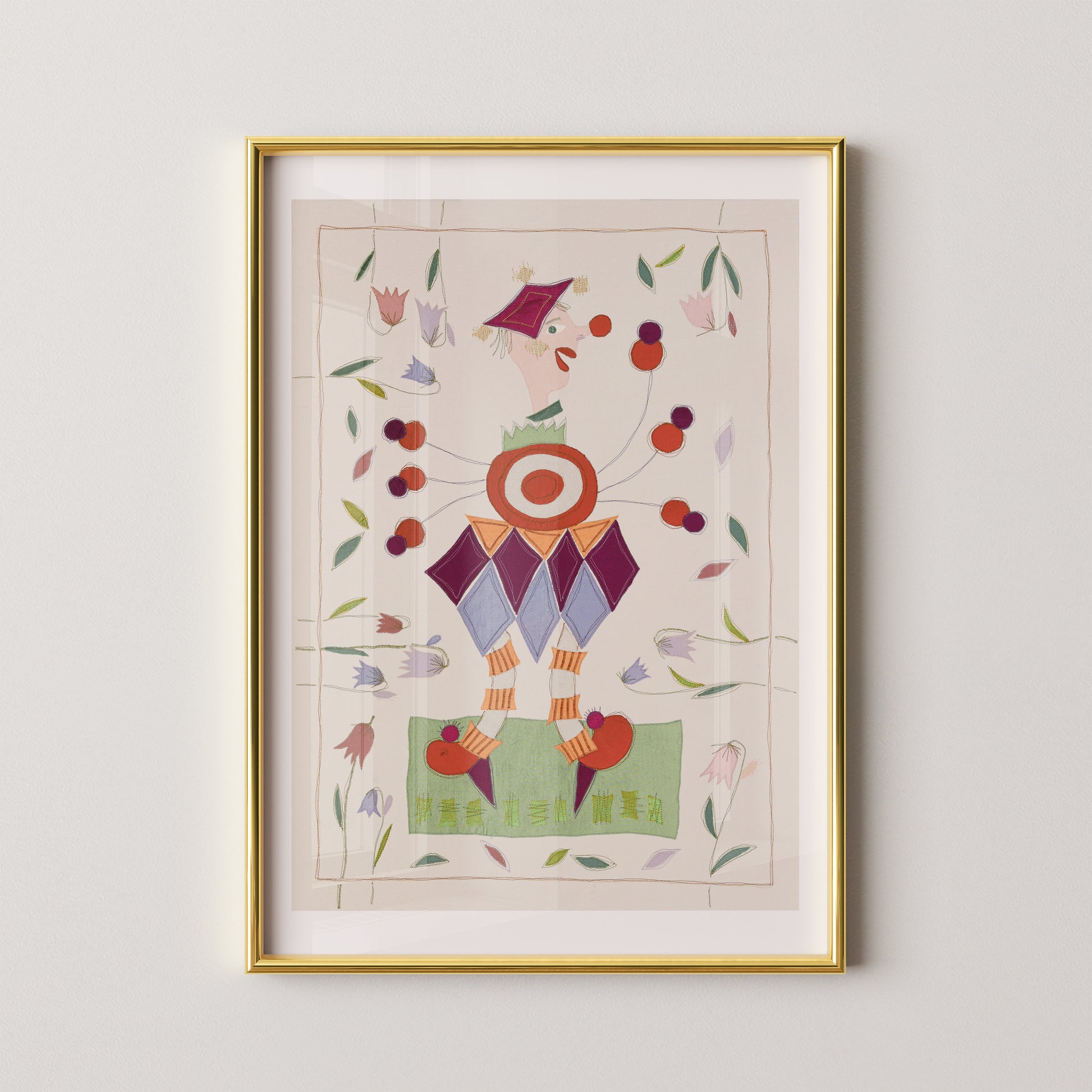 Dieser Kunstdruck basiert auf einem handgearbeiteten Stoffbild, das in aufwendiger Applikationstechnik entstanden ist (mehr dazu findest du unter "Unsere Geschichte"). Mit Hilfe eines speziellen Strukturscanners wurden die originalen Werke Digitalisiert. Durch eine hohe Auflösung bleiben selbst feine Nähte und die charakteristischen Stoffstrukturen im Druck sichtbar und die textile Tiefe des Originals bleibt auch auf Papier erfahrbar.