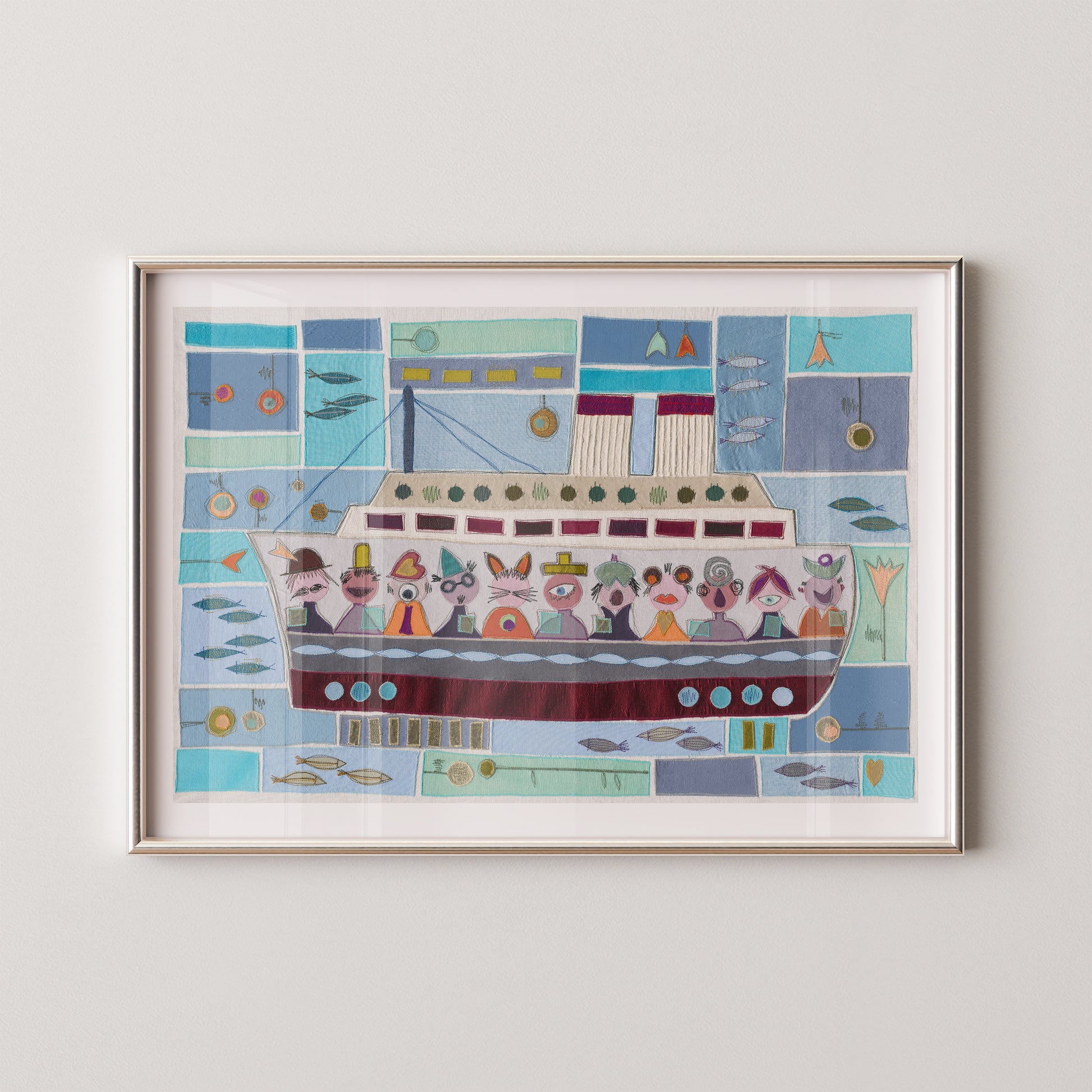 Dieser Kunstdruck basiert auf einem handgearbeiteten Stoffbild, das in aufwendiger Applikationstechnik entstanden ist (mehr dazu findest du unter "Unsere Geschichte"). Mit Hilfe eines speziellen Strukturscanners wurden die originalen Werke Digitalisiert. Durch eine hohe Auflösung bleiben selbst feine Nähte und die charakteristischen Stoffstrukturen im Druck sichtbar und die textile Tiefe des Originals bleibt auch auf Papier erfahrbar.