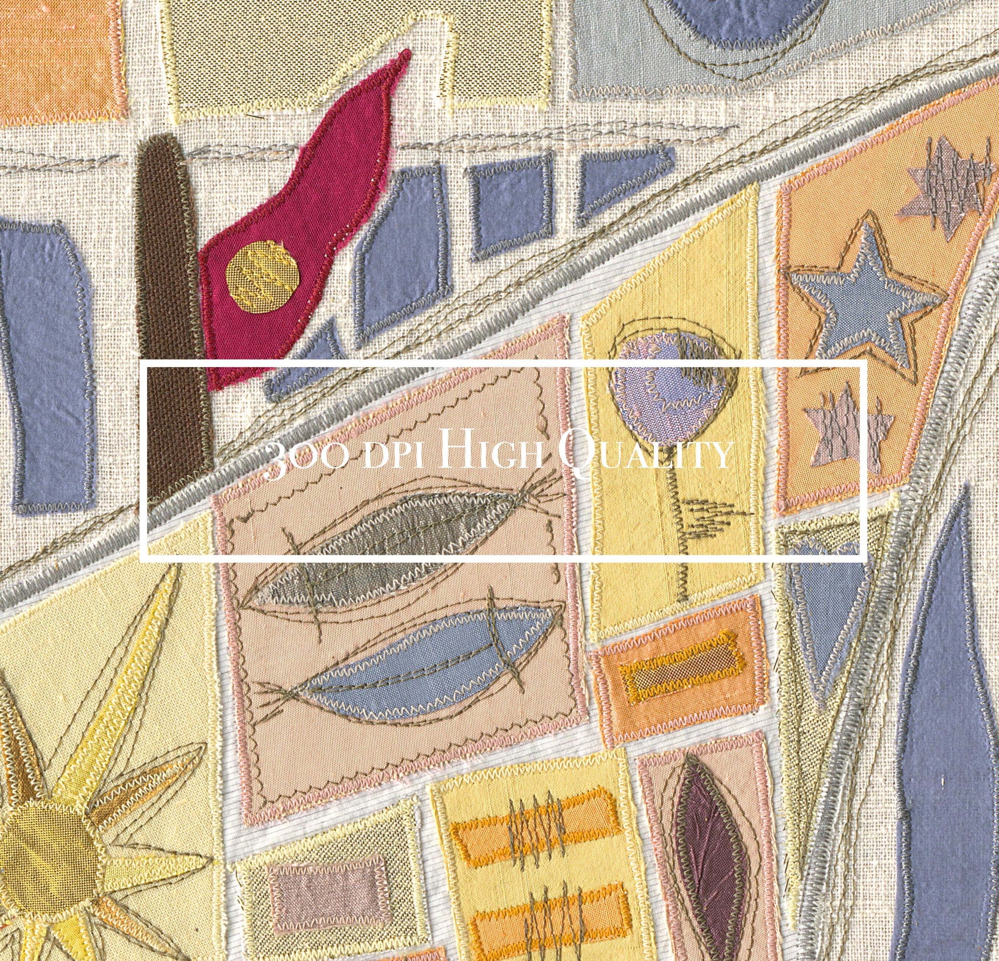 Dieser Kunstdruck basiert auf einem handgearbeiteten Stoffbild, das in aufwendiger Applikationstechnik entstanden ist (mehr dazu findest du unter "Unsere Geschichte"). Mit Hilfe eines speziellen Strukturscanners wurden die originalen Werke Digitalisiert. Durch eine hohe Auflösung bleiben selbst feine Nähte und die charakteristischen Stoffstrukturen im Druck sichtbar und die textile Tiefe des Originals bleibt auch auf Papier erfahrbar.